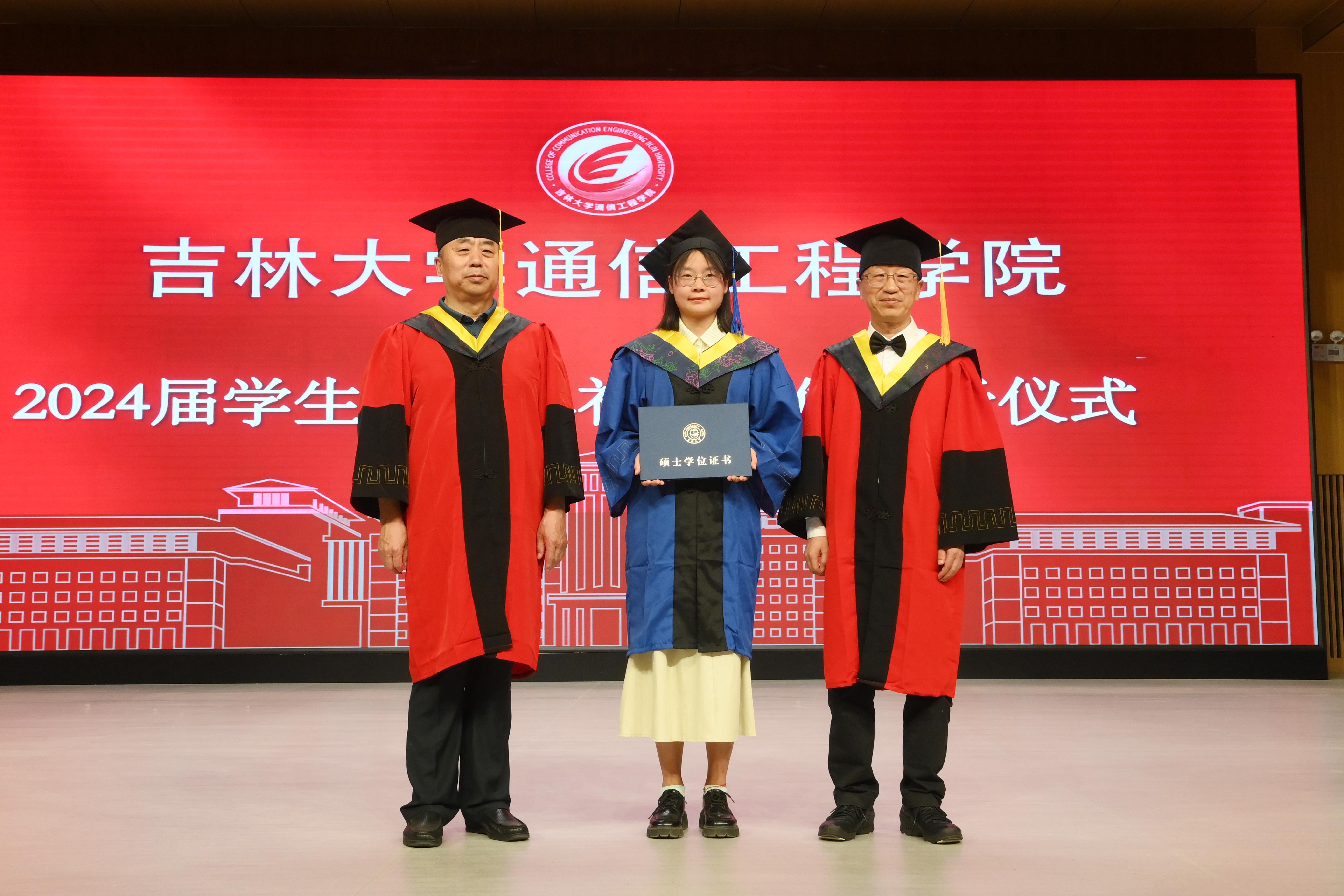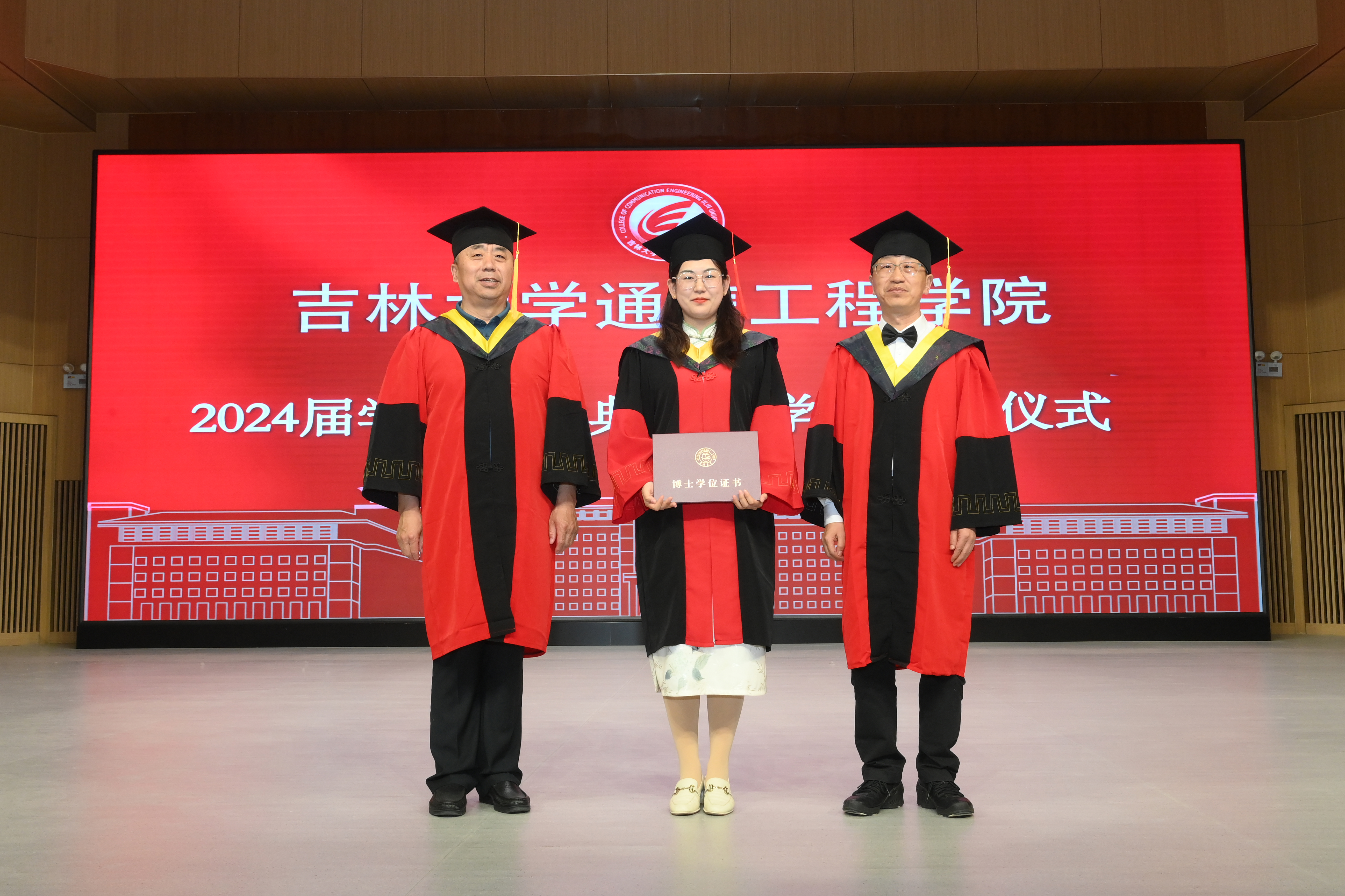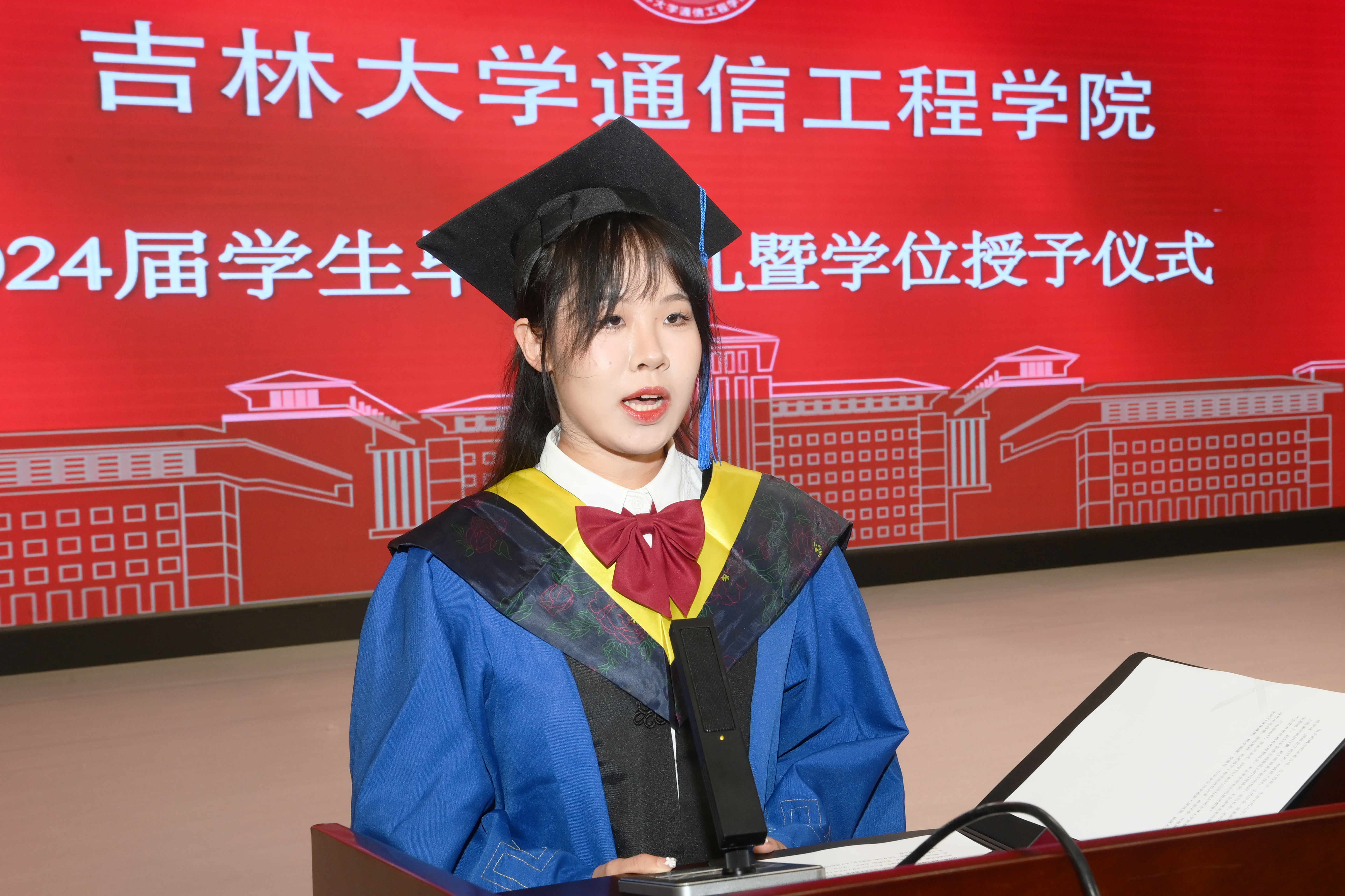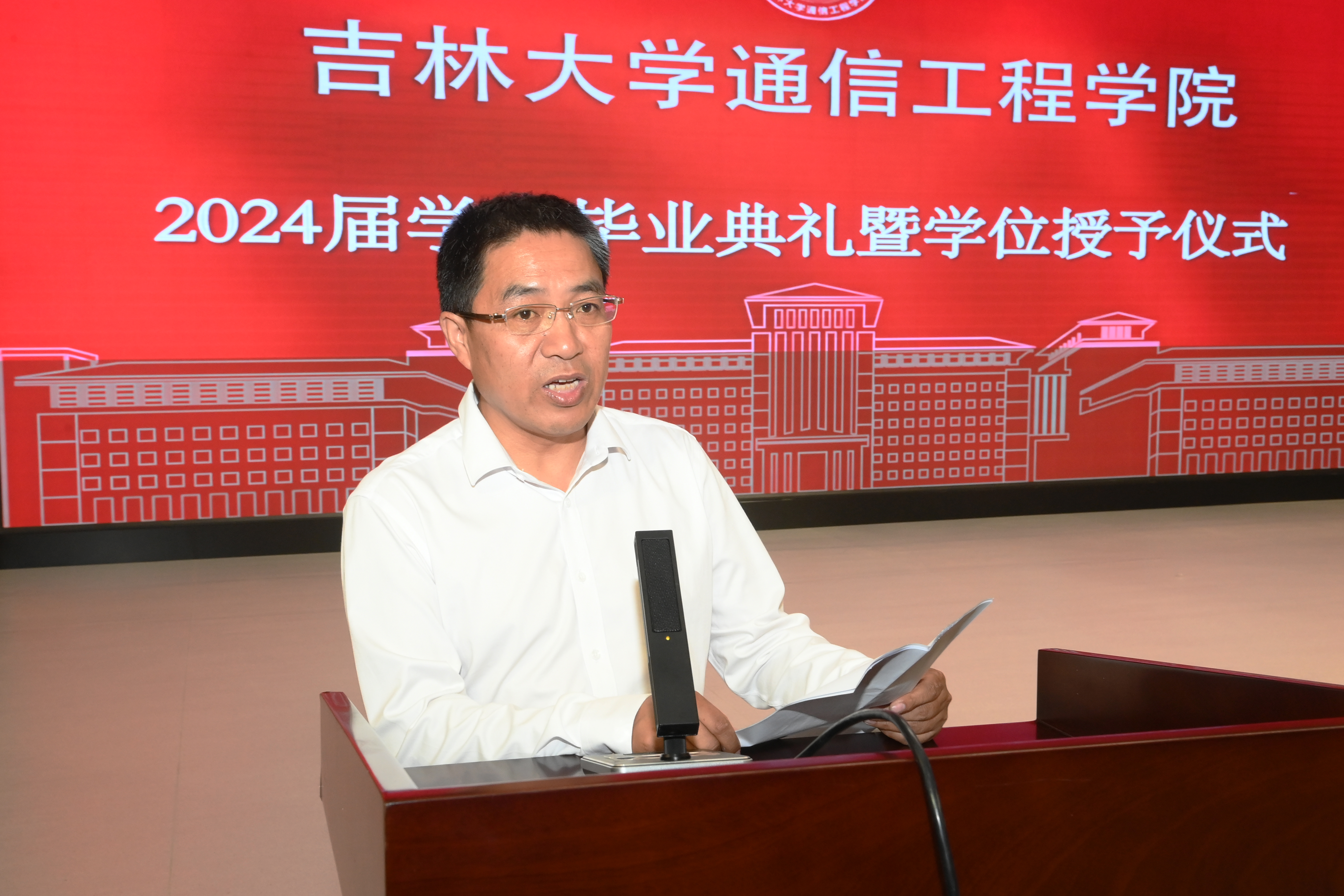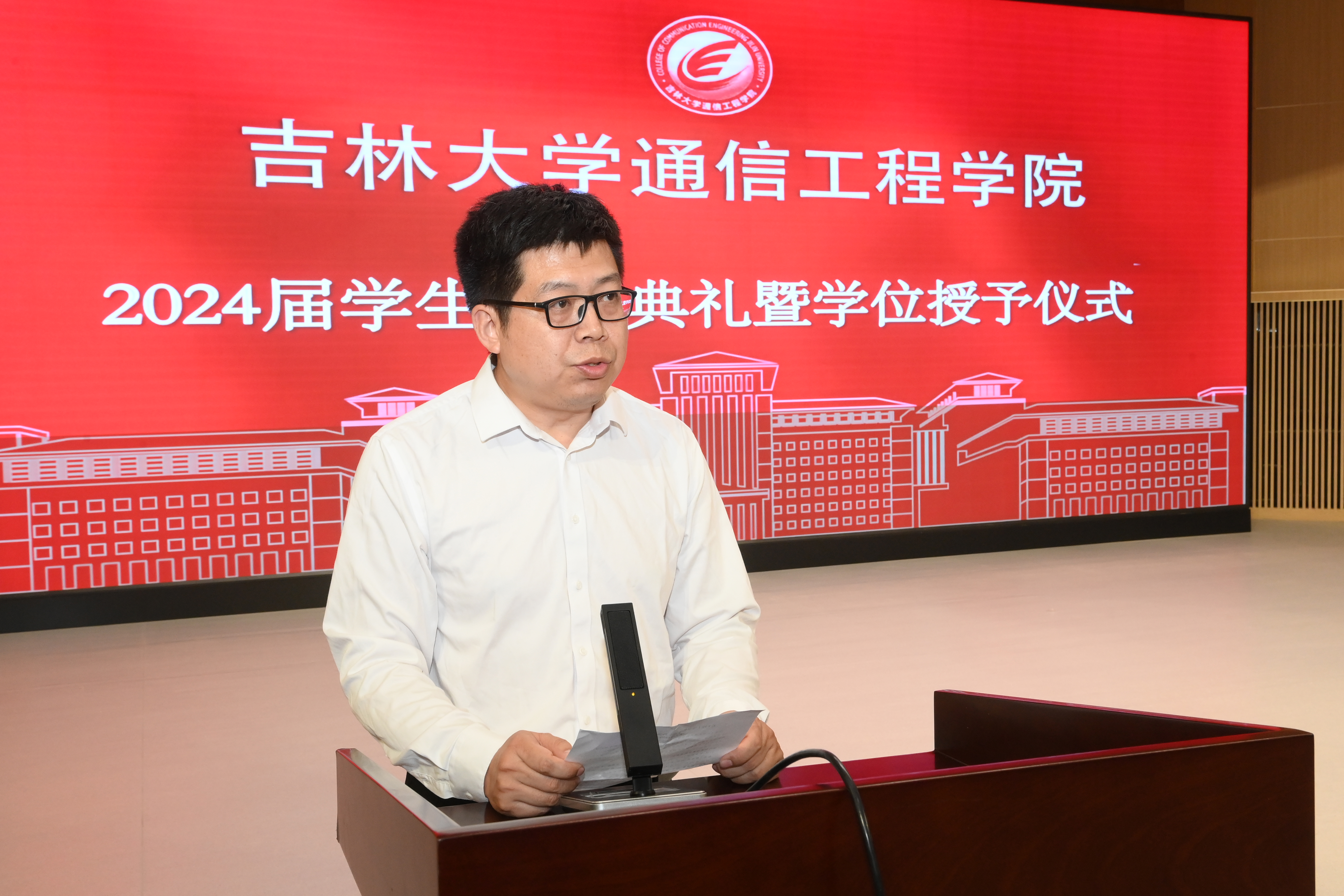 在典礼开始前首先播放了学院精心制作的毕业纪念短片,随后在庄严的国歌声中毕业典礼正式开始。首先副院长李新波宣读了2024届获得学士学位的毕业生名单。副院长燕学智宣读2024届获得硕士学位和博士学位的毕业生名单。院党委书记董宏志老师宣读优秀毕业生名单。