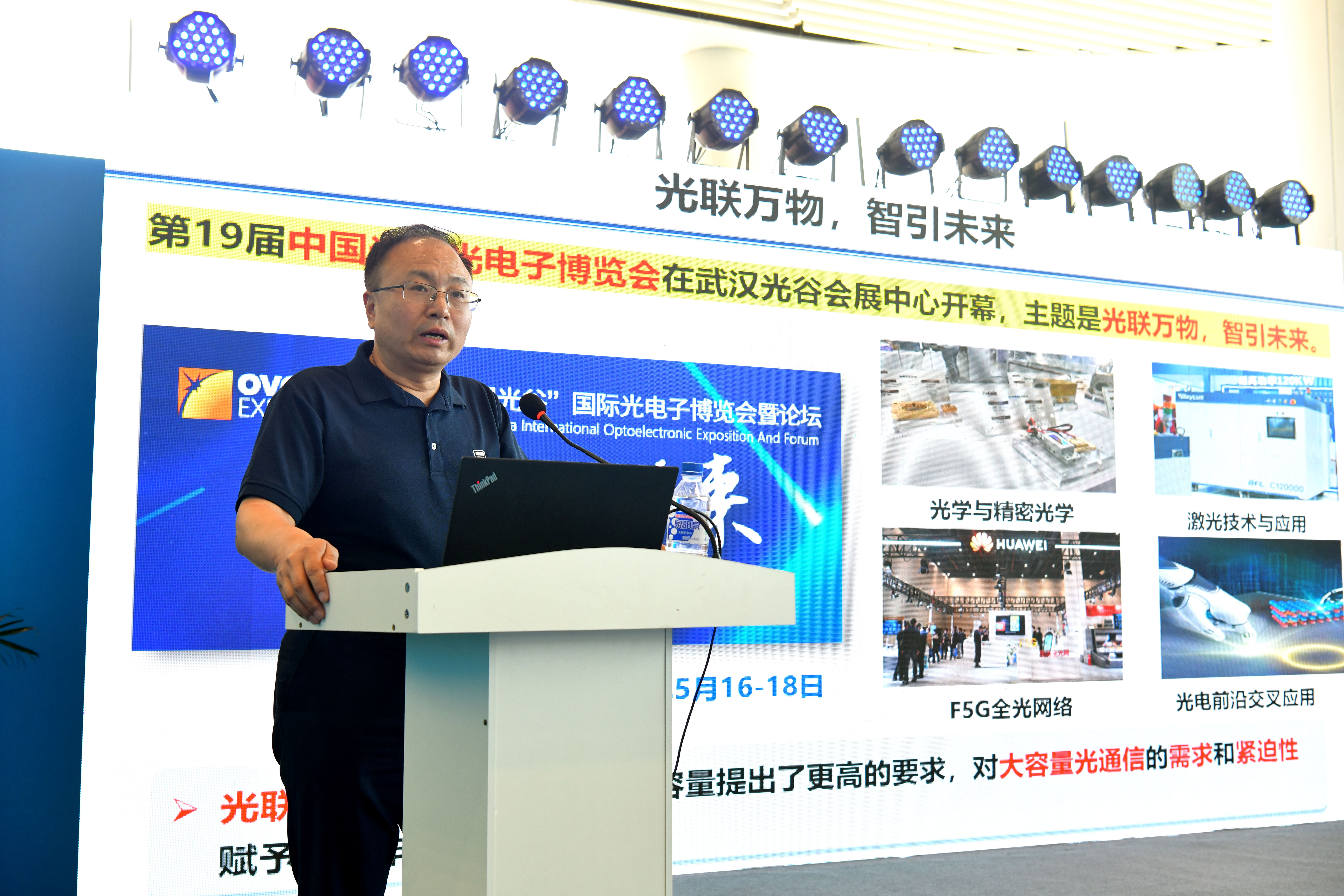 唐敖庆特聘领军教授、中国光学学会高级会员、中国纤维光学与集成光学专业委员会委员胡贵军教授做了“光联万物:大容量光通信技术前沿进展”的报告,聚焦揭示大容量光通信领域的新视野,解析多波段复用和模分复用等新技术,探讨大容量光通信的前沿进展。华为光产品线政企领域总裁谷云波做了“F5G Advanced 筑基行业智能化”的报告,通过多宗实例论述了如何通过提升光通信的传输效率实现光联万物。