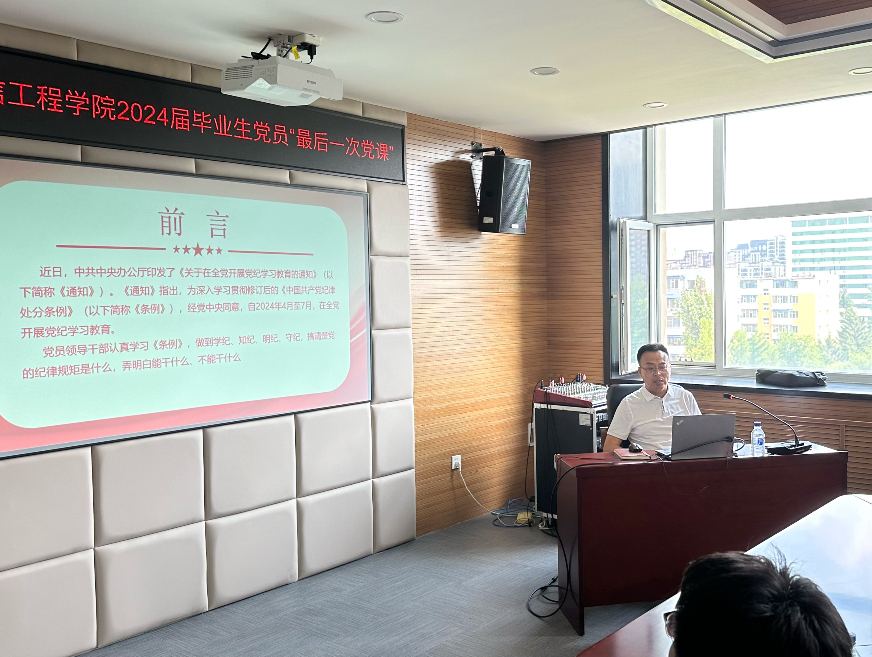 党委书记董宏志为2024届毕业生党员讲授“最后一次党课”,党课由学院党委副书记刘星彤主持。
