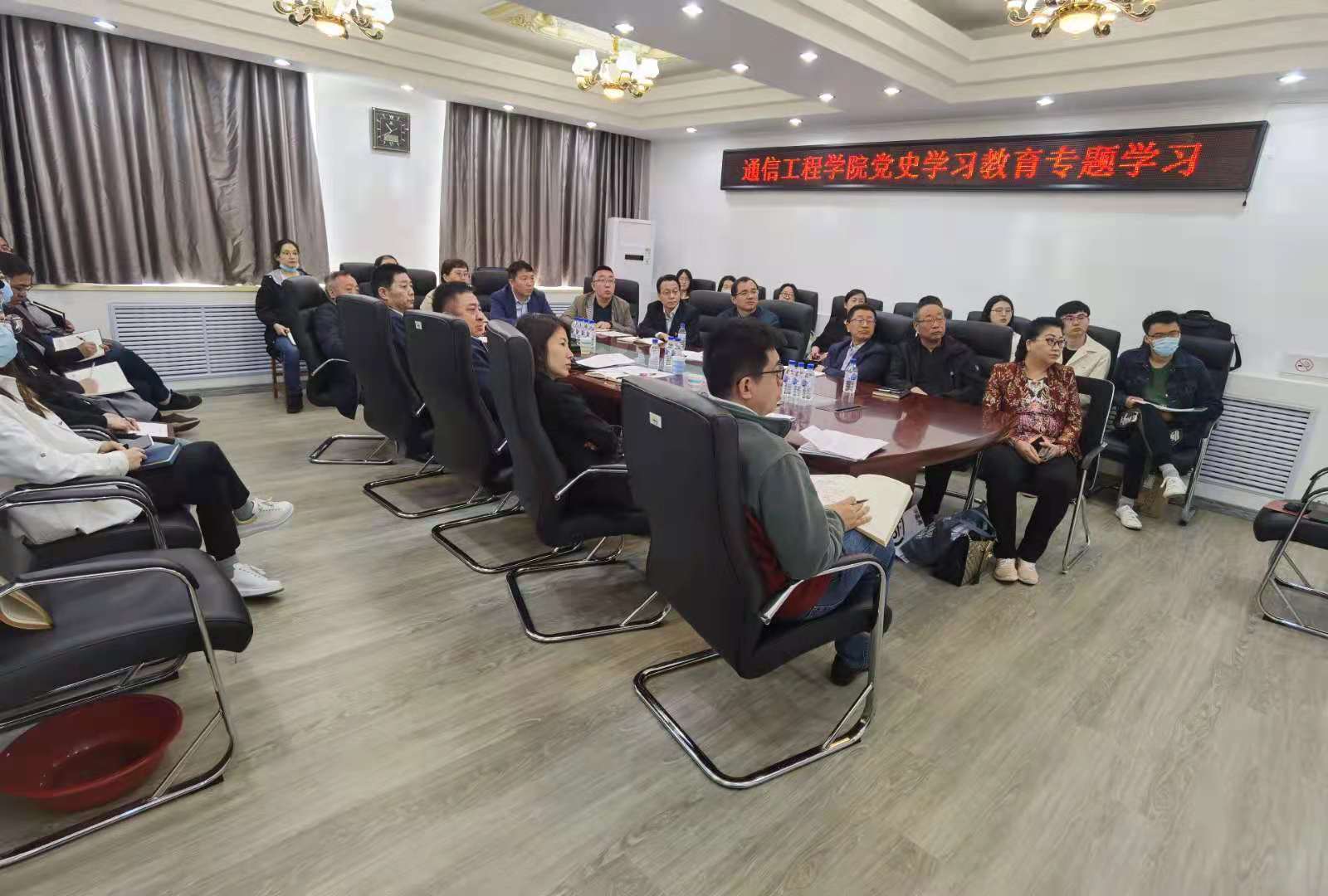 在南湖校区办公楼三会议室召开了党史学习教育第二次集体学习。会议由党委书记郑东主持,学院领导班子、党委委员、党支部书记参加会议。学校党史学习教育第十五督导组莅临指导检查。