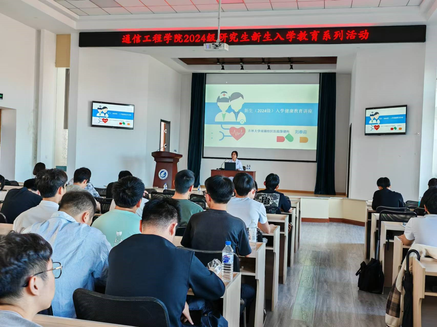 医院概况,讲解了医疗证与医保卡的正确使用方法,以及医院转诊与报销的流程。同时,借助公益短片,向同学们普及了传染病防治的重要知识和实用的预防技巧,为新生们的健康校园生活筑起坚实防线。