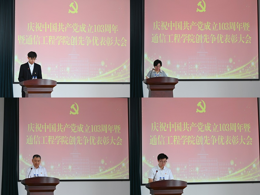 党委在南湖校区图书馆四楼报告厅隆重举办了庆祝中国共产党成立103周年暨创先争优表彰大会。学院全体教工党员和学生党员代表参加会议。会议由党委副书记刘星彤主持。