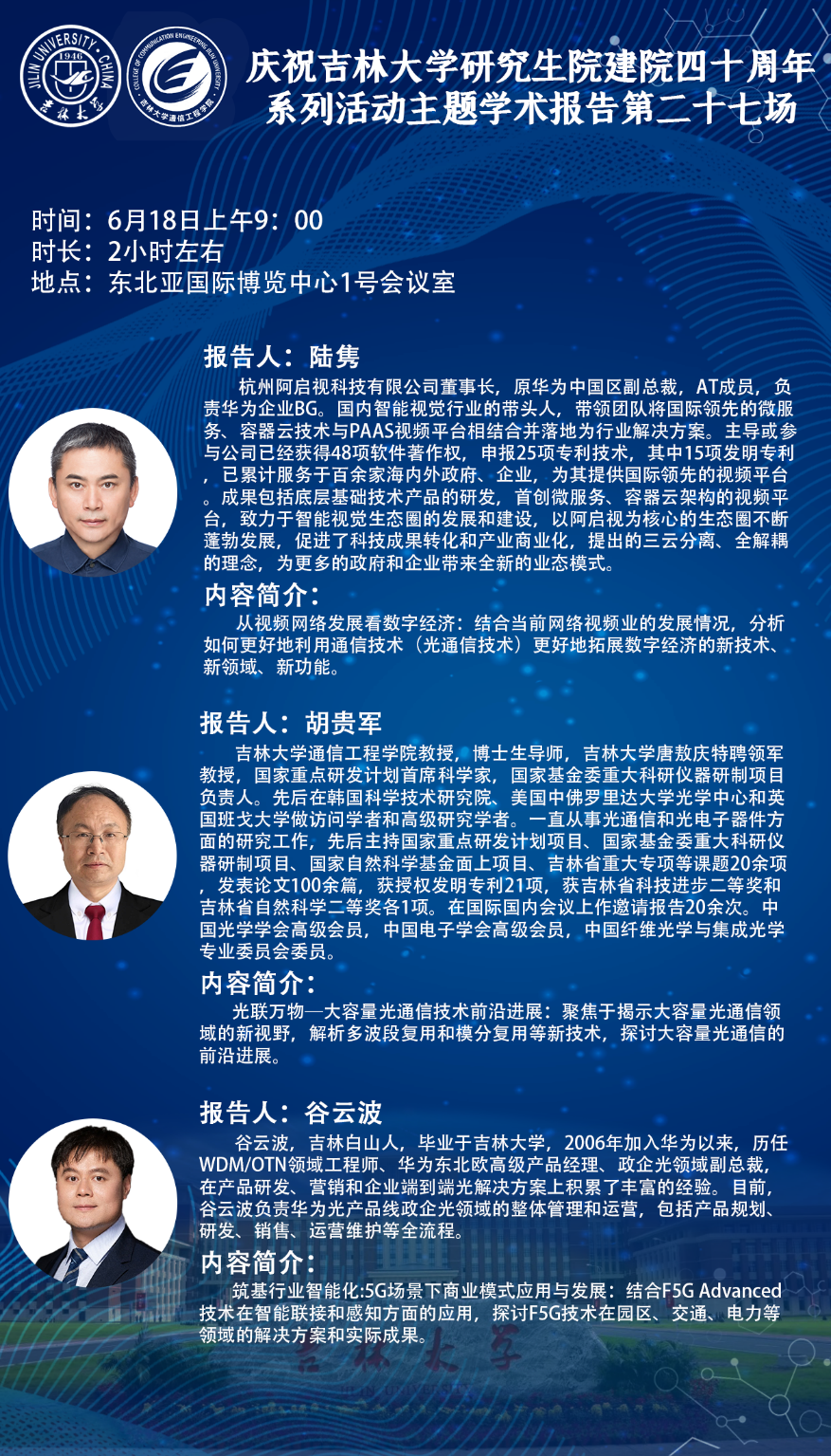 在长春东北亚博览中心举办了“光通信与光网络未来发展”学术报告会。本次会议吸引了众多行业重点领域的专家、学者和企业家齐聚一堂,共同探讨光通信领域的未来技术发展、市场应用和人才培养。会议由91视频