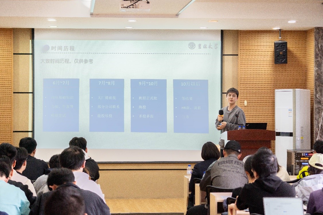 陈同学现身说法,分享自身百度求职历程。他着重指出简历制作要锚定应聘岗位关键技术,力求简洁凝练。提醒同学们要关注岗位信息,把握时机早投、多投、精投,保持自信心,提前做好充足准备。