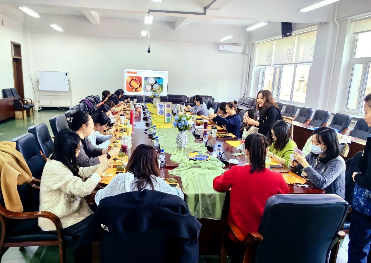 妇委会成功举办“坠玉凝心意,串饰悦时光”非遗手工制作活动。全院20余位女教职工参加了此次活动,活动由学院副院长、妇委会主任王雪主持。